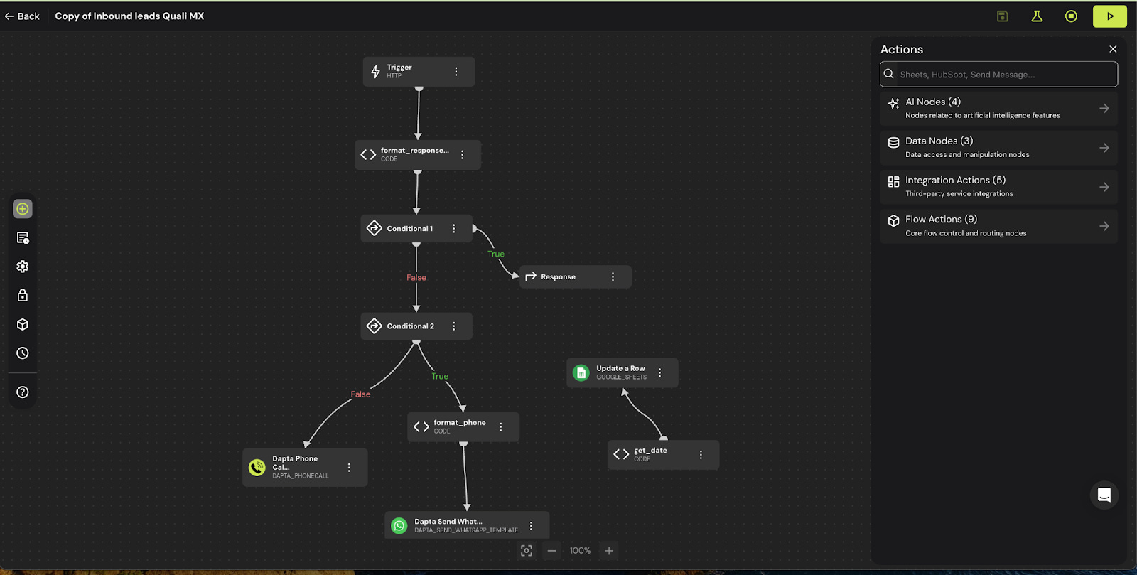 Cuando alguien llena el formulario de contacto en nuestro sitio web, recibe una llamada o mensaje de WhatsApp de un agente de AI que hace una precalificación. No trabajamos con cualquier empresa; tenemos criterios específicos. El agente prefiltra estos leads para que cuando lleguen a un agente de ventas humano, ya estén calificados.