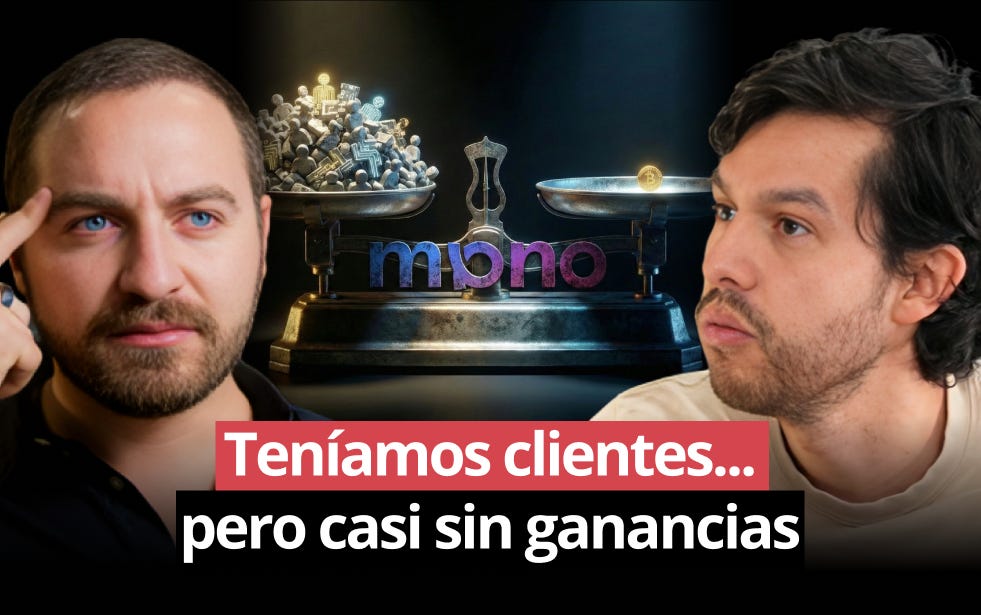 Después de dos años y medio construyendo, Mono tuvo que cambiar el negocio. Ahora, antes de escribir una línea de código, van y venden. Si no hay contrato, no hay producto. Esta me la llevo.