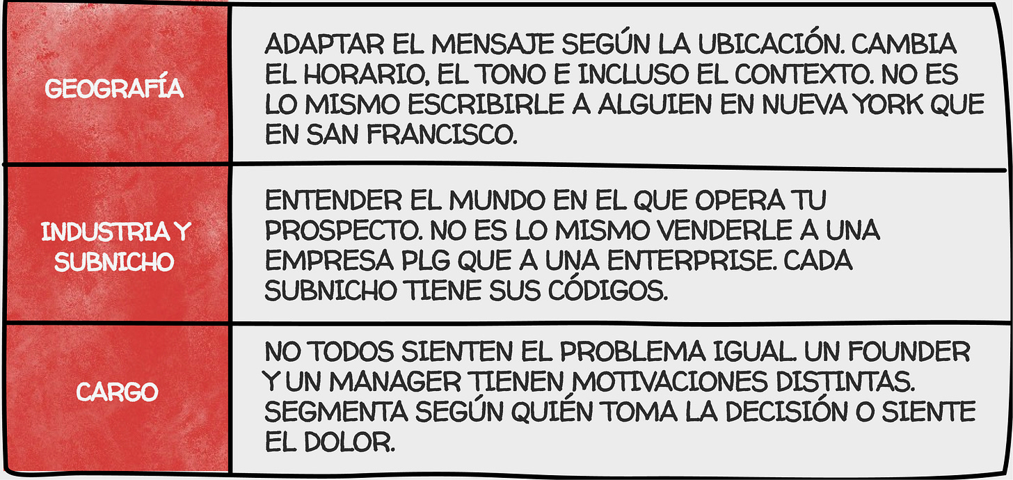 Spam es mandarle algo irrelevante a alguien que no pidió nada. Cold email es escribirle a la persona adecuada, con un mensaje que le importa. La diferencia está en la segmentación.