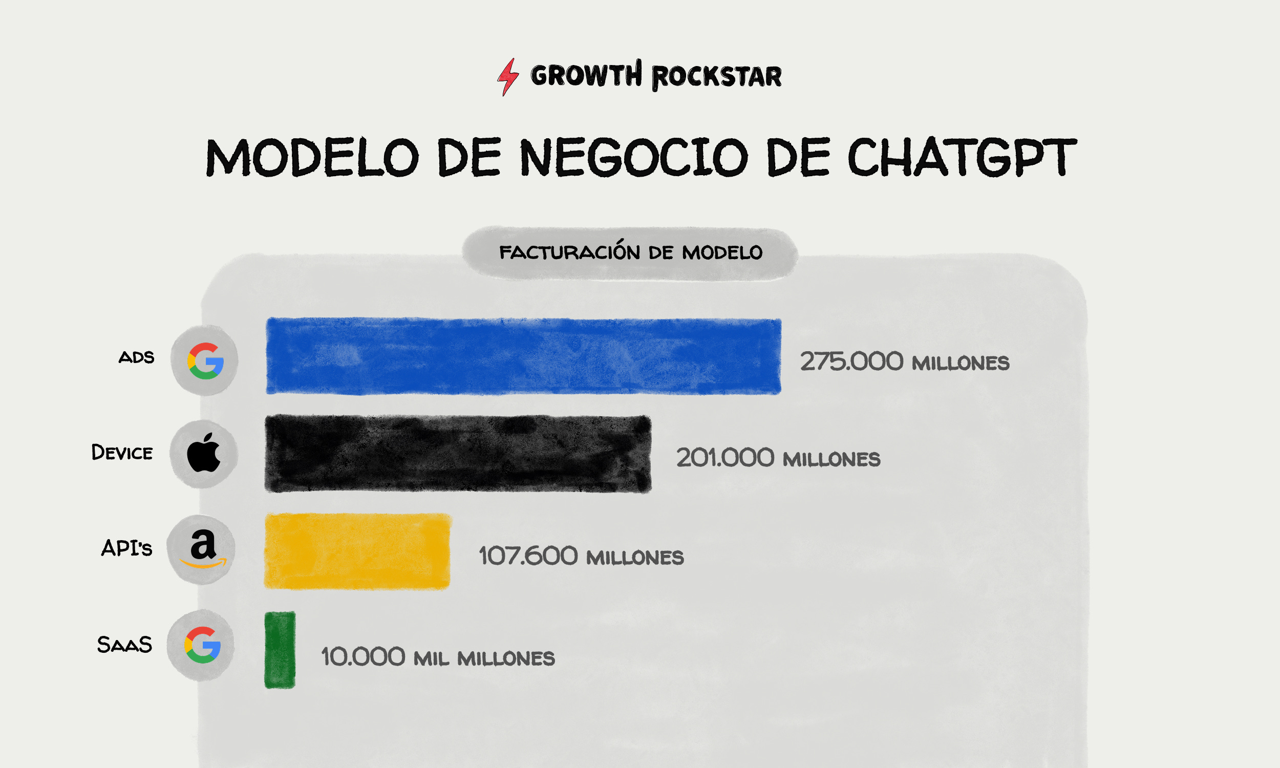 No estoy seguro de que ChatGPT puede generar muchos más ingresos que Google en esta comparación, con lo cual puedo concluir que el negocio de suscripciones puede ser de aprox. $10.000 millones de dólares anuales.