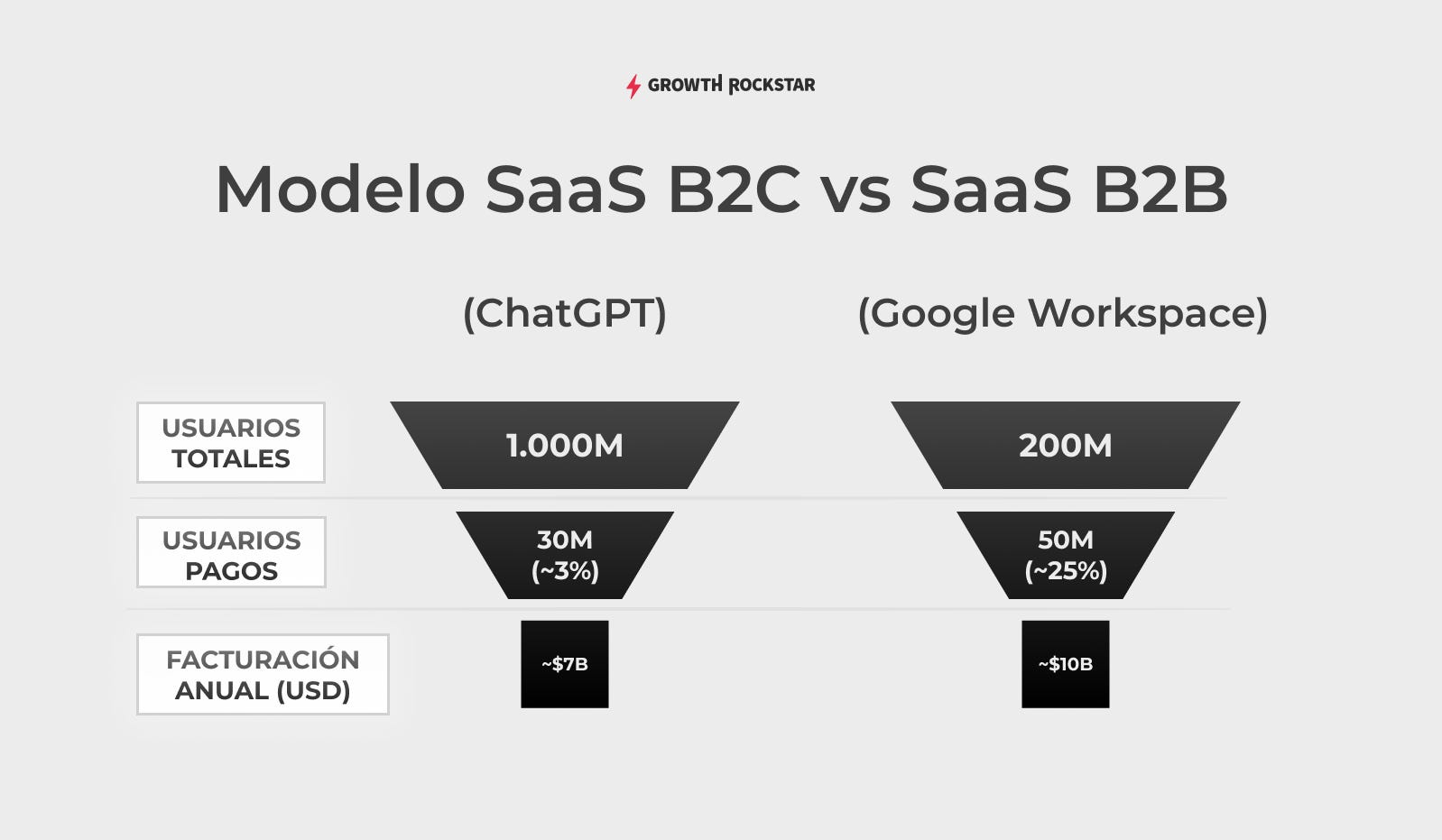 ChatGPT Plus cobra $20 dólares al mes. Esa es, hoy, la única fuente de ingresos directa y visible de OpenAI. Si estimamos una base de mil millones de usuarios activos, con una conversión típica del 3% en productos con modelo SaaS, estamos hablando de unos 30 millones de usuarios pagos.