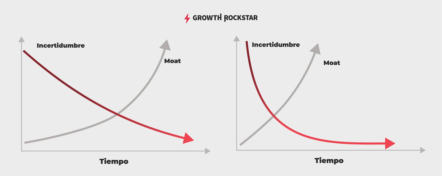 Lo que muestro en la imagen es que una mayor incertidumbre te da más tiempo para desarrollar barreras de entrada (MOATs).