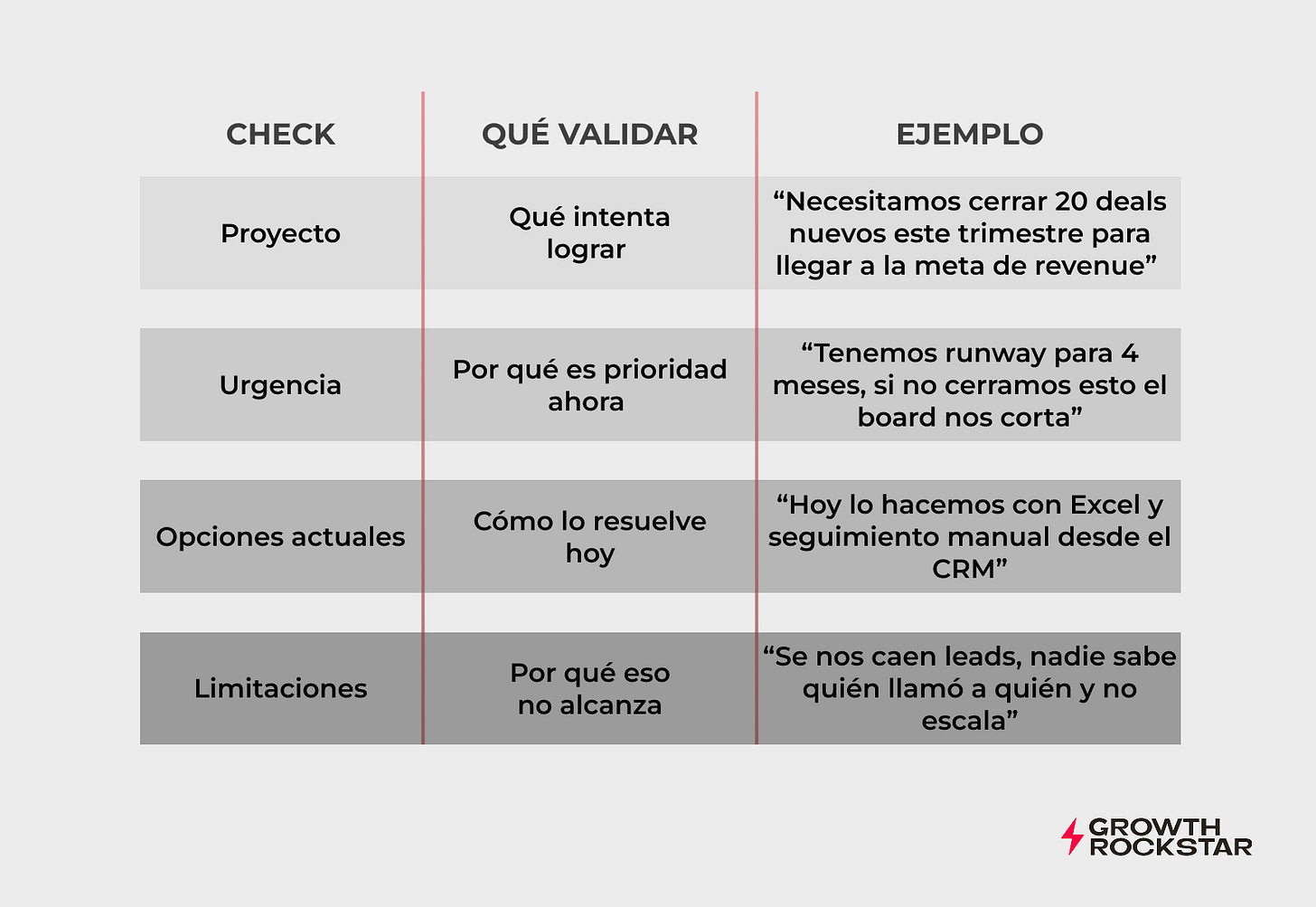 Para saber si la hay, usá esta checklist de cuatro cosas y completala con información de tus llamadas de venta.